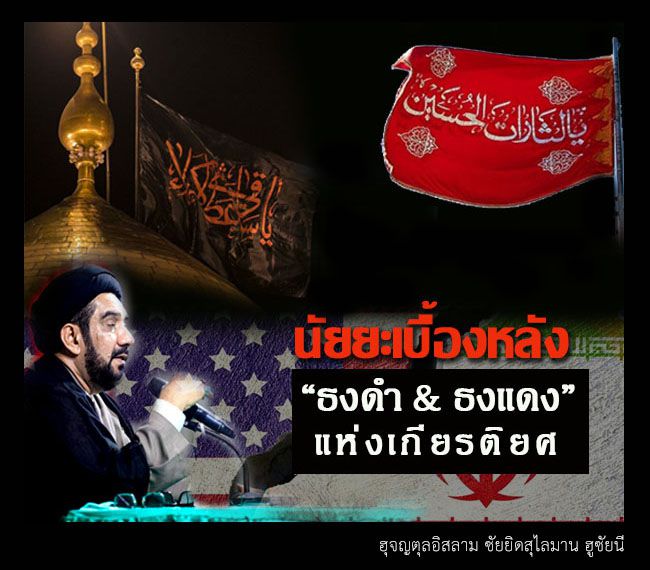 “ธงดำ คือ ธงแห่งการไว้ทุกข์ – ตามความเชื่อของมุสลิมชีอะฮ์นั้น ระบุว่า อิมามมะฮ์ดี อ. (อิมามท่านสุดท้าย) จะมาชักธงนี้อีกครั้งหนึ่ง เมื่อท่านปรากฏ